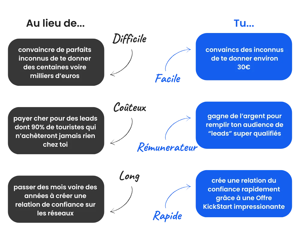 Parce que contrairement à beaucoup, je ne fais pas de blabla, je vais droit au but pour te livrer un condensé de pure valeur et que tu puisses passer à l'action rapidement.